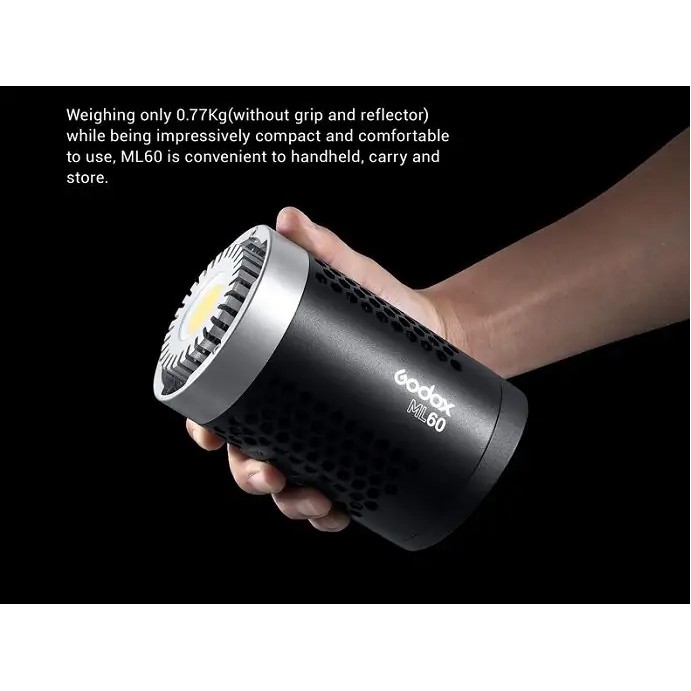 Đèn Led Godox ML60 là dòng sản phẩm mới nhỏ gọn với nhiều tính năng nổi bật. Với khả năng cân bằng nguồn sáng 60W cực kỳ thuận tiện, thiết bị cho phép sử dụng linh hoạt trong nhiều tình huống khác nhau. Ngoài ra, Godox ML60 cũng giúp đạt được ánh sáng chất lượng trong các công việc đòi hỏi tính sáng tạo và sự chuyên nghiệp cao. Godox ML60 là sự kết hợp hoàn hảo giữa tính di động và khả năng chiếu sáng hoàn hảo, mặc dù có kích thước nhỏ nhưng không hề ảnh hướng đến hiệu suất đèn khi sử dụng.THÔNG SỐ KỸ THUẬT: