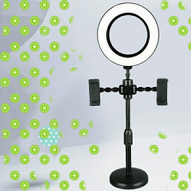 Gía đỡ điện kiêm đèn led livestream để bàn mini kiểu chữ T thiết kế hợp kim chắc chắn , tặng kèm remote hỗ Trợ Quay Video Tiktok Bộ sản phẩm có 2 chức năng rất tiện dụng cho bạn hay Livestream hay bán hàng online hay cho mọi người xem, hay làm việc ...Có đèn Led siêu sáng, giúp cho hình ảnh của bạn luôn sáng rõ đẹp khi phát Livestream Cùng với đế kẹp giúp giữ thăng bằng Giá đỡ tiện dụng 2 điện thoại cùng 1 lúc Bộ sản phẩm gồm 2 chức năng: Đèn Led, Giá kẹp điện thoại Rất là tiện lợi Bộ Phụ Kiện Live Stream là bộ sản phẩm vô cùng hữu ích cho cuộc sống hiện đại. Bộ Phụ Kiện Live Stream được thiết kế vô cùng đặc biệt bằng khung kim loại cao cấp có thể điều chỉnh tùy thích các góc độ. Trục đỡ điện thoại và trục đỡ đèn bằng được kết nối bằng viên bi nên có thể xoay 360 thỏa thích.Bộ Phụ Kiện Live Stream có thể sử dụng vào nhiều việc như học tập, làm việc hay nhưng buối Live Stream online. Ngoài ra có thể vừa sử dụng để xem phim, nghe nhạc, đọc sách mà không phải đỡ tay,... Thông Tin Giá kẹp điện thoại để bàn:-Chất liệu : gang pha -Chiều cao tối thiểu : 25cm Chiều cao tối da: 40cm-Đầu kẹp xoay 360 độ-Giữ kẹp điện thoại: 5 - 8inch-Chân đế và thân vững, chắc-Có đèn led vòng kích thước đường kính 16cm.Có thể chỉnh màu trắng,vàng,sâng tối tùy thích*Lưu ý : Do vận chuyển và sắp xếp kho, hộp sản phẩm có thể bị móp.Giá NFT