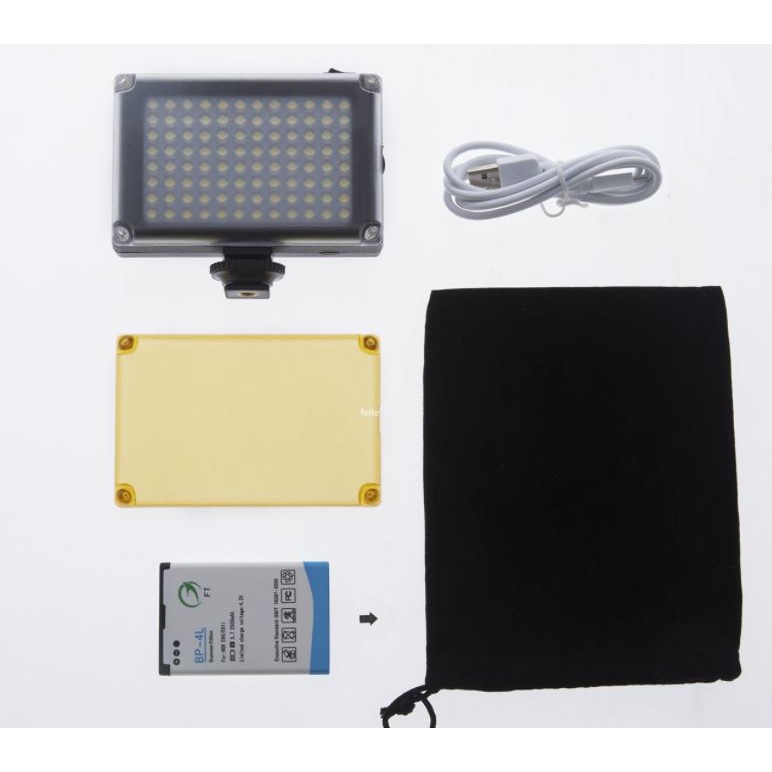 + Đèn led 96 bóng trợ sáng dành cho điện thoại, máy ảnh+ Bộ sản phẩm gồm : Đèn + 2 miếng lọc sáng màu trắng và cam