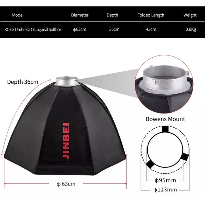 💥THÔNG SỐ SOFTBOX JINBEI KC63: