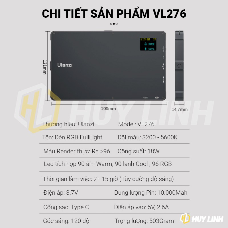 Giới thiệu Đèn led Studio Ulanzi VIJIM VL276 RGB FillLight - 18W 5600K pin khủng 10000Mah