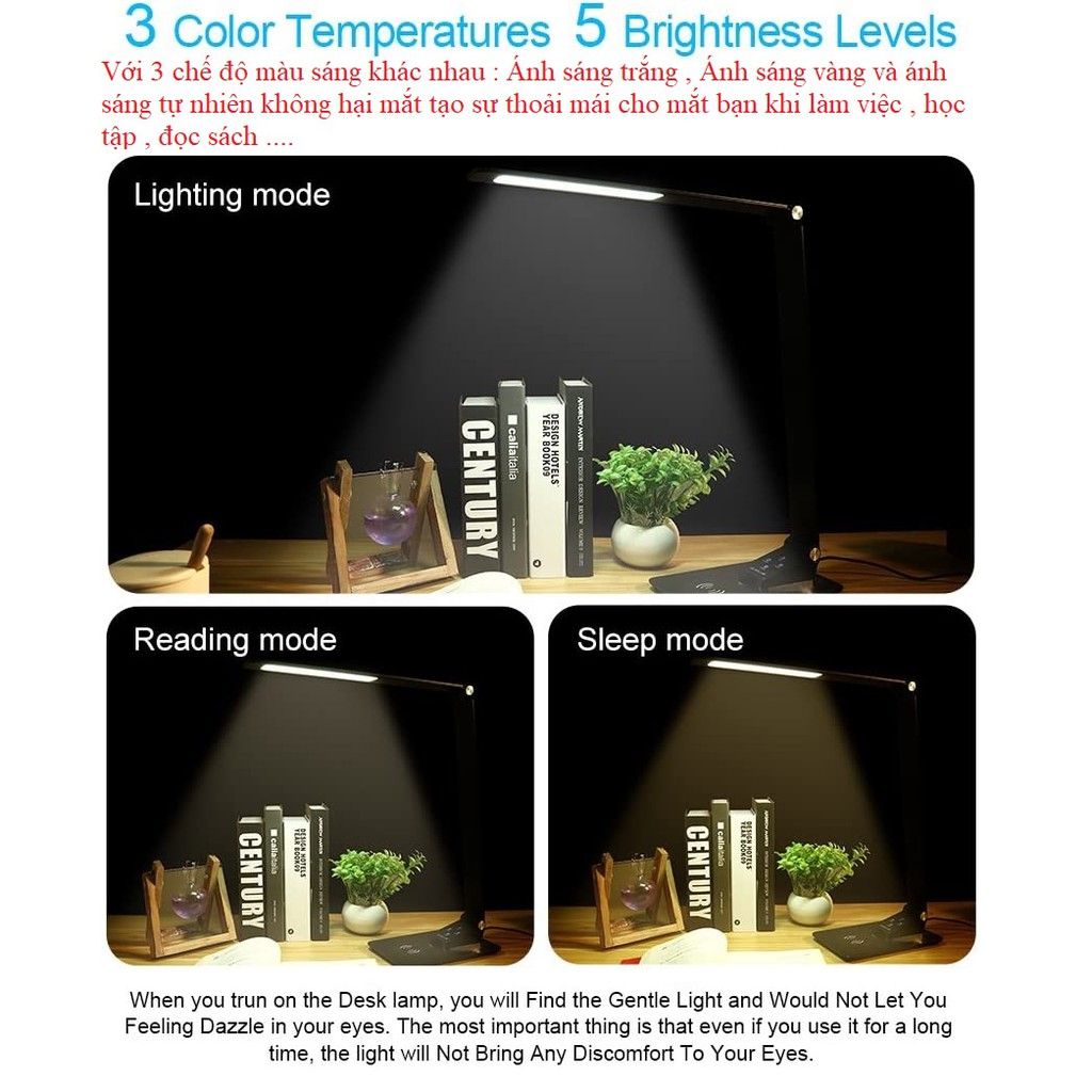 Đèn led tích hơp sạc không dây ,bảo vệ mắt dùng để bàn làm việc , bàn học , phòng ngủ ...