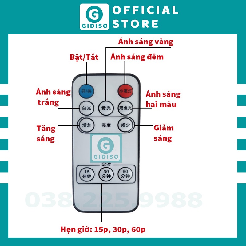 Đèn cảm ứng chạm 3 màu có điều khiển GIDISO (Đèn 3 màu có Remote):