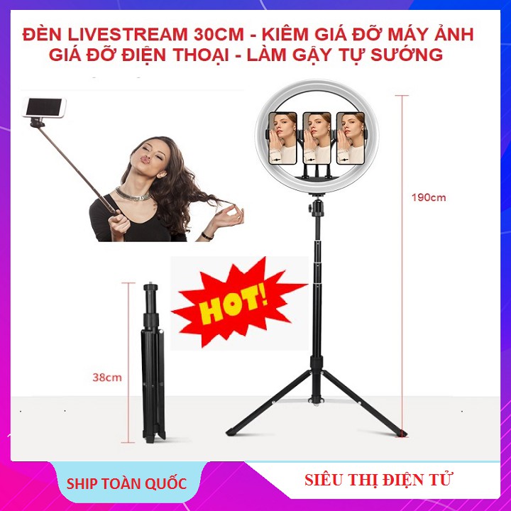 - Đèn M30E190 - 4in1 Đa Năng Cao Cấp Chính Hãng - Đèn Size 30cm - Kẹp Cùng Lúc 3 Điện Thoại Livestream - Hạ Thấp Rút Cao Tiện Lợi Đẹp Chắc Chắn Hơn Các loại Đèn Hiện Có Trên Thị Trường Để Thấp Nhất 70cm Rút Cao Nhất 190cm- Shop Có Tặng Thêm 1 Kẹp ĐT Để Khi quý khách Tháo Đèn Ra Là Làm Được Giá Đỡ Điện Thoại 3 Chân