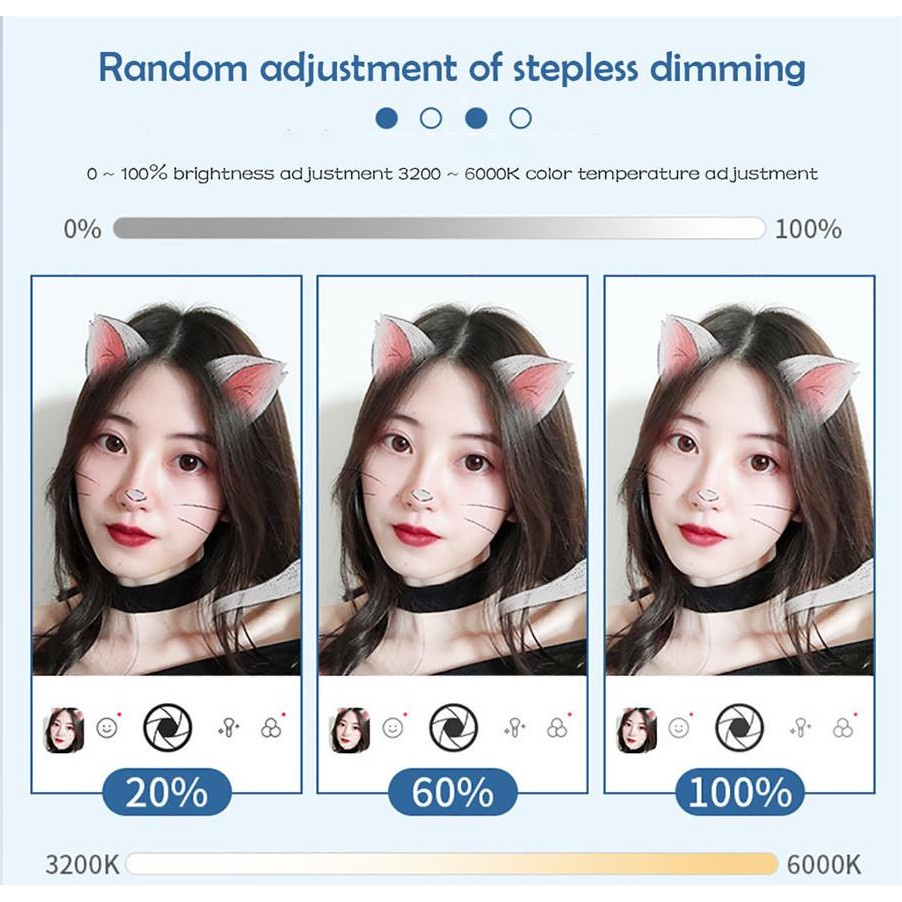 +Với gương đèn này, bạn sẽ trông hoàn hảo và tinh tế trong ảnh hoặc video, chụp chân dung, livestream, trang điểm, giảng dạy trực tuyến, quay clip,…thích hợp với mọi nhu cầu để lắp đầy ánh sáng không gian xung quanh.