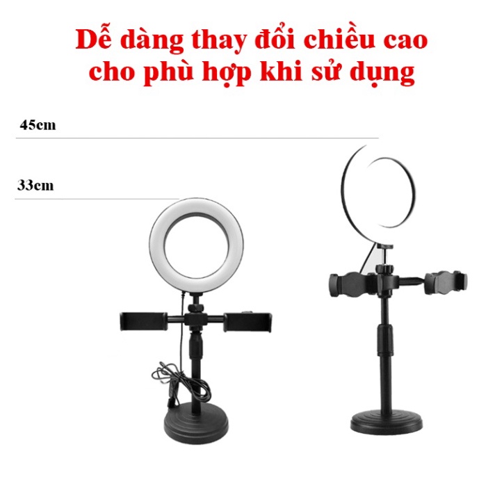 Điện Thoại & Phụ Kiện > Phụ kiện > Phụ kiện selfie > Giá đỡ || Đèn Livetream DK-099 để bàn 3 trong 1 - Kẹp được 2 điện thoại cũng lúc, Có 3 chế độ màu khác nhau Educase.vnCòn hàng