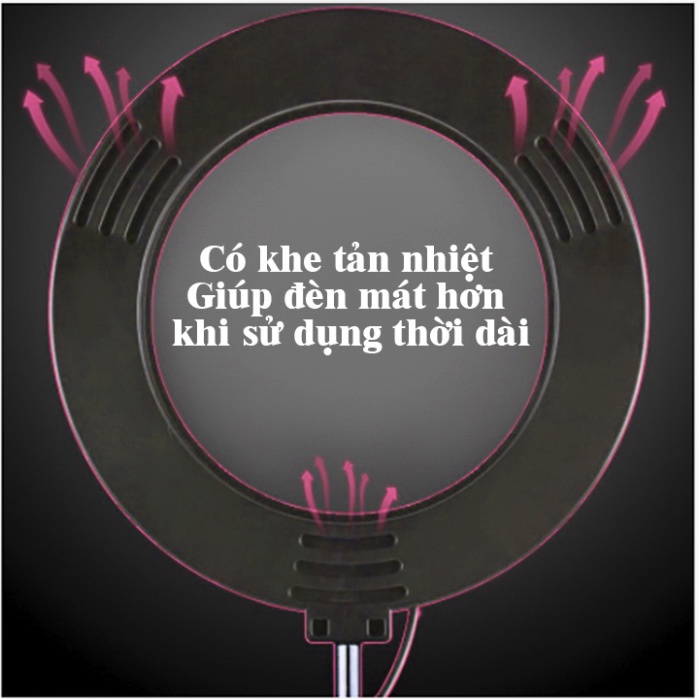- Có đèn led vòng kích thước đường kính 16cm. Có thể chỉnh màu trắng, vàng, sáng tối tùy thích