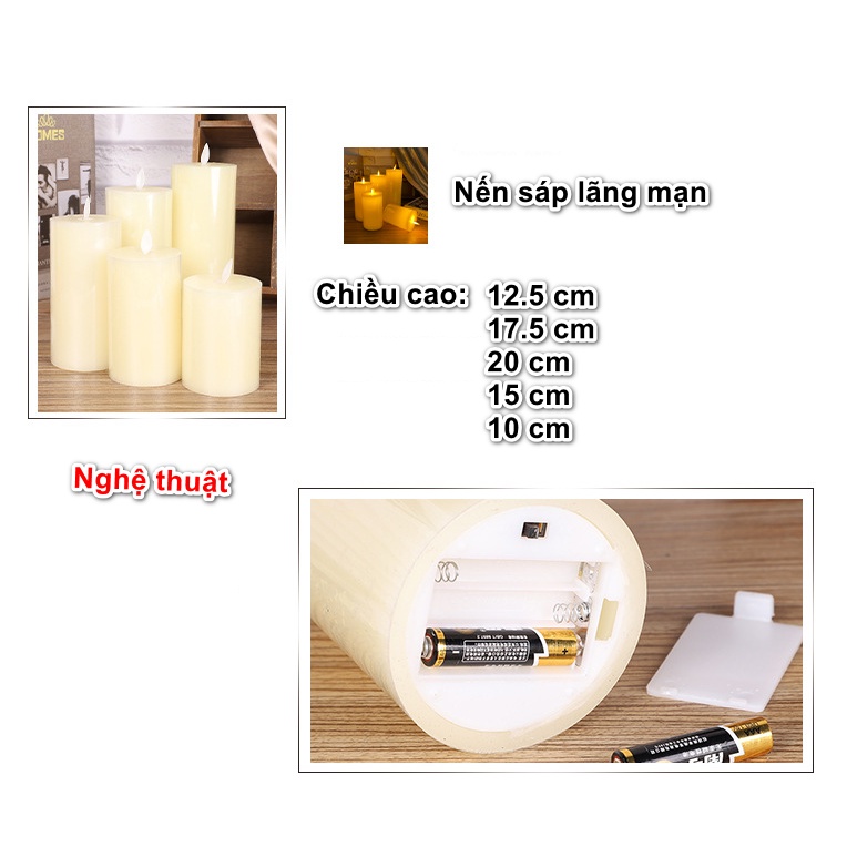 ** Kích thước: đường kính nến 7.5cm, chiều cao 5 loại: 10cm, 12.5cm, 15cm, 17.5cm, 20cm (Tham Khảo Theo Trên Hình)