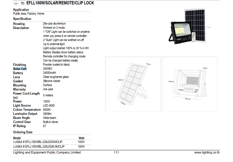 Model | LUMAX#EFLL100/BL-100LED/6.5K-XSXD |