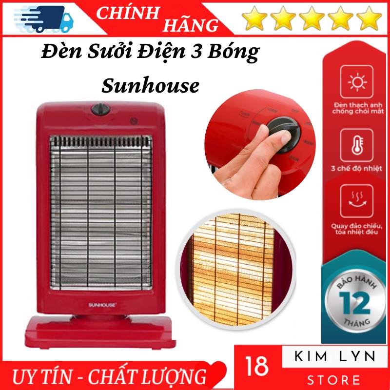 - Đèn sưởi 3 Bóng Halogen Sunhouse SHD7016 là một trong những thiết bị sưởi ấm không thể thiếu tại gia đình trong mùa đông. Sản phẩm sử dụng đèn hồng ngoại siêu bền, tỏa nhiệt đều, không gây khó thở và khô da, đảm bảo an toàn cho người sử dụng.
