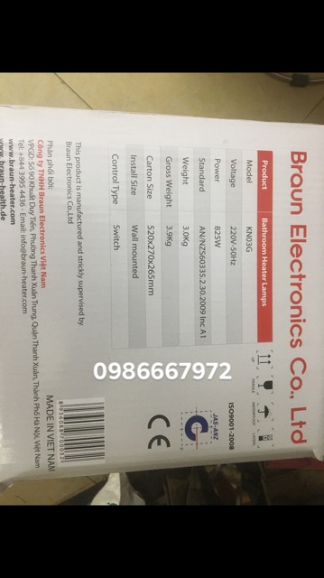 Bóng đèn sưởi Brau được sản xuất trên công nghệ hiện đại của CHLB Đức, chứng nhận đạt chuẩn chất lượng châu Âu RoHS, CE, TEST.com, ứng dụng công nghệ IPX2 chống thấm nước, chống cháy nổ, đảm bảo an toàn cho người sử dụng.