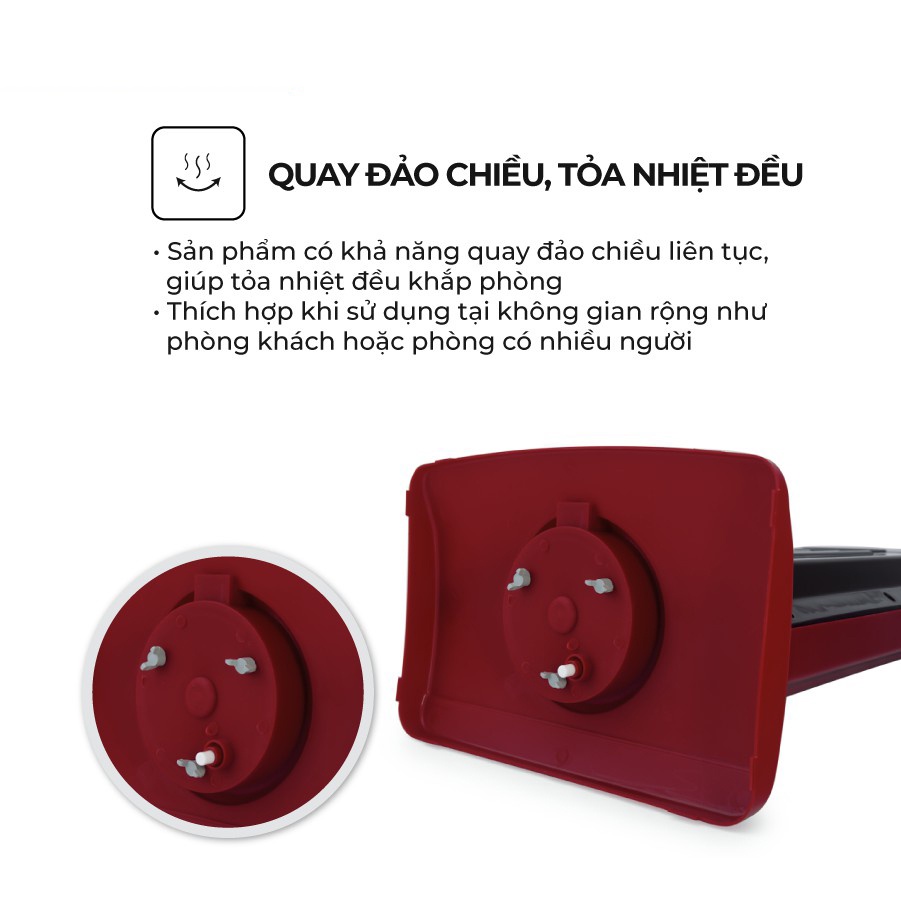 Sản phẩm có khả năng quay đảo chiều liên tục, giúp tỏa nhiệt đều khắp phòng, rất thích hợp khi sử dụng tại không gian rộng như phòng khách hoặc phòng có nhiều người.