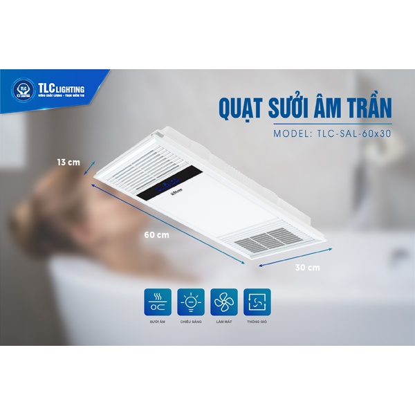 Giới thiệu Đèn sưởi nhà tắm đa năng, Quạt sưởi âm trần TLC 4 mùa công suất lớn có thiết kế vô cùng an toàn cho người sử dụng