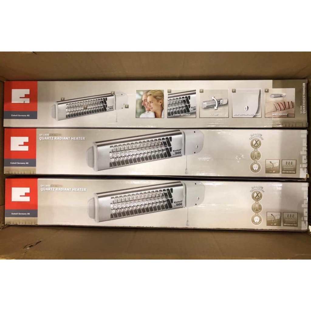 - Máy sưởi EINHELL QH 1800 là máy sưởi gắn tường tiện dụng được thiết kế lý tưởng cho các phòng chỉ thỉnh thoảng được sưởi ấm. Có ba cài đặt cho ba mức công suất (600W/1200W/1800W) có thể được đặt cho các yêu cầu riêng và kích hoạt ba phần tử sưởi bằng thạch anh.
