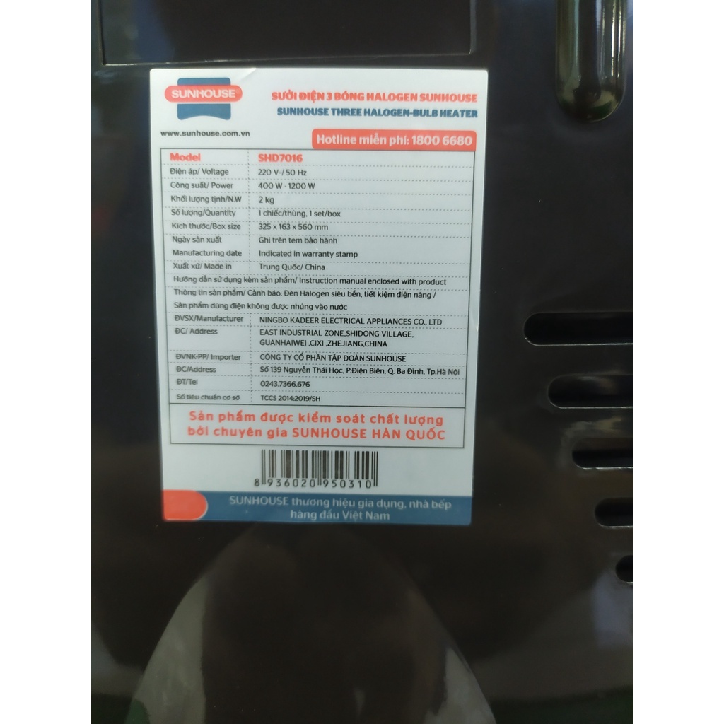 Thiết Bị Điện Gia Dụng > Thiết bị điện gia dụng lớn > Máy sưởi || Đèn Sưởi Phòng 3 Bóng, Quạt Sưởi Phòng 3 Bóng SUNHOUSE SHD7016 Công Nghệ Halogen Bảo Hành 12 tháng - 7016Còn hàng