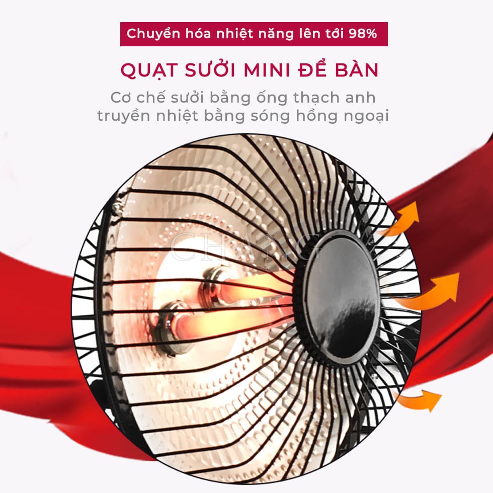 Đèn Sưởi, Quạt Sưởi Mini Xoay 360 Độ 4Inch Hồng Ngoại Để Bàn Ấm Áp Tiết Kiệm Điện Năng