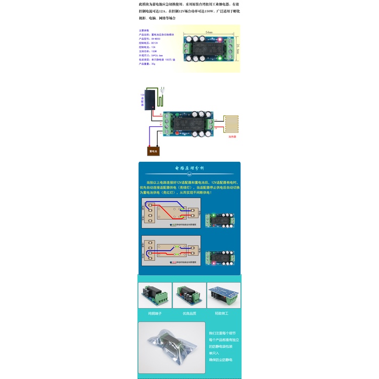 - Mạch chuyển đổi nguồn tự động 12V150W có chức năng tự động chuyển đổi nguồn điện dự phòng khi mất điện. Mạch được thiết kế nhỏ gọn với cách sử dụng đơn giản nhưng vẫn đạt năng suất hiệu quả.