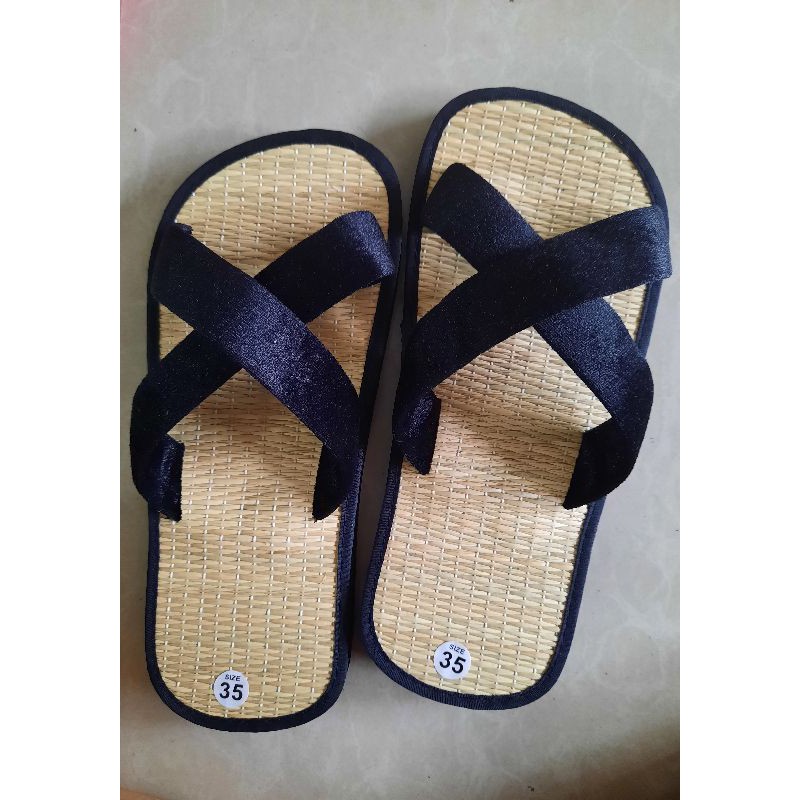 Dép chiếu coi chéo nhung rất êm, mềm, ôm chân.Sản phẩm làm từ nguyên liệu thiên nhiên chiếu, vải tốt cho sức khỏe thấm mồ hôi chân, k cấn hay đau chân.