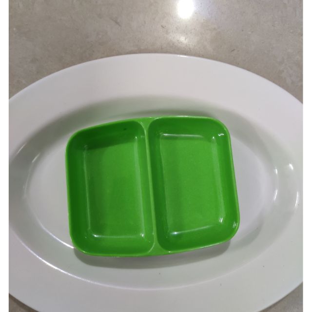 - đĩa 2 ngăn xanh, : 8*10cm