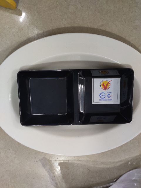 - đĩa 2 ngăn đen vuông: 8*15cm