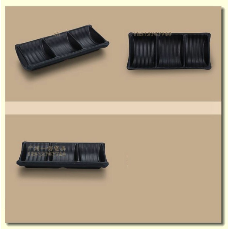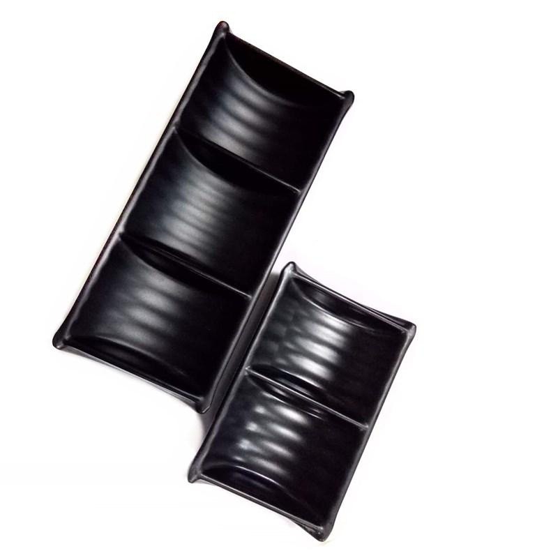 Nhà cửa & Đời sống > Bộ đồ bàn ăn > Dĩa || Đĩa chấm 3 ngăn nhựa màu đen cao cấp kiểu hình ống tre 140118Còn hàng