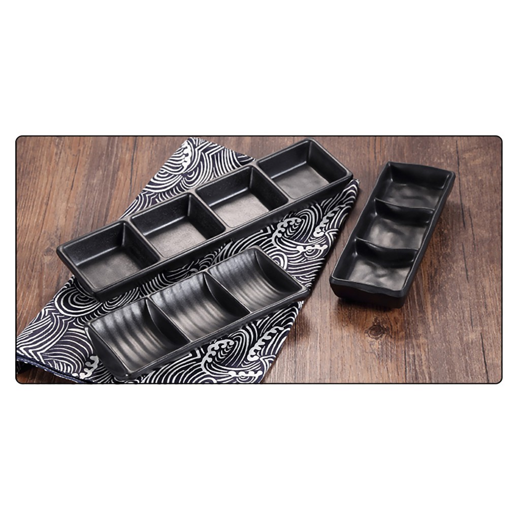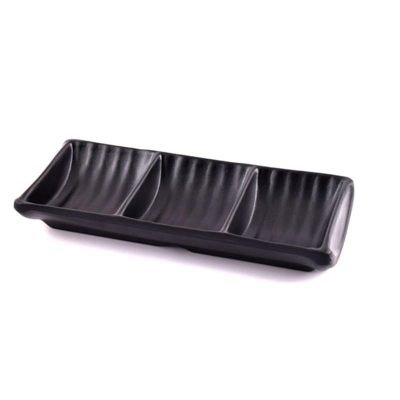 Đĩa chấm 3 ngăn nhựa màu đen cao cấp kiểu hình ống tre 140118