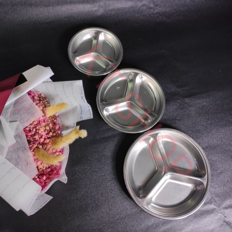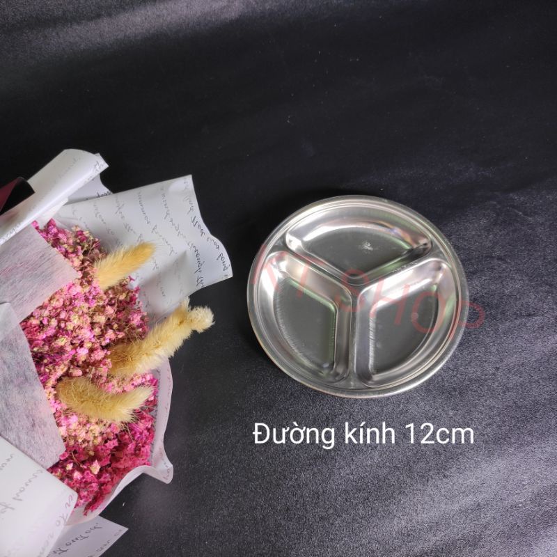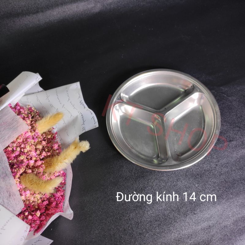 Chất liệu thép không gỉ an toàn vệ sinh thực phẩmGồm 2 phân loại là dĩa 2 ngăn và 3 ngăn với 3 kích thước 10cm, 12 cm và 14 cm
