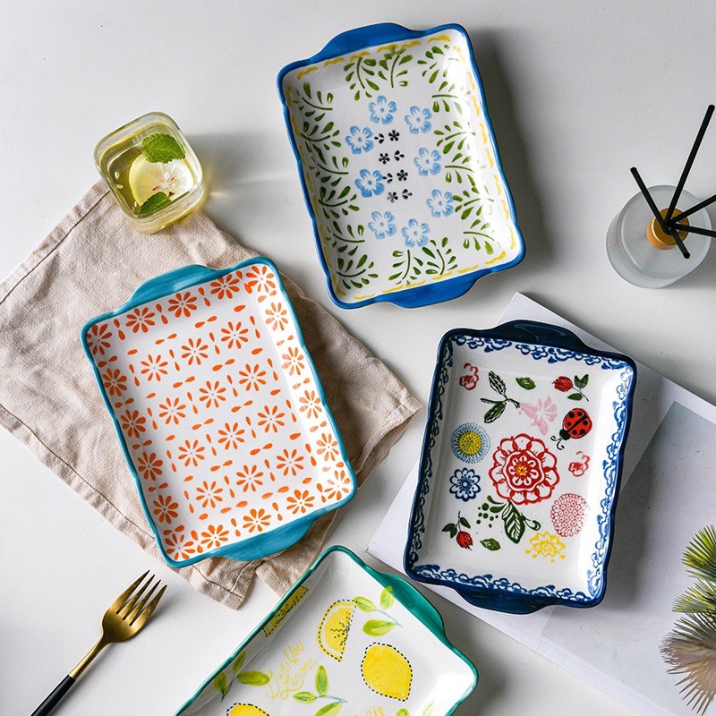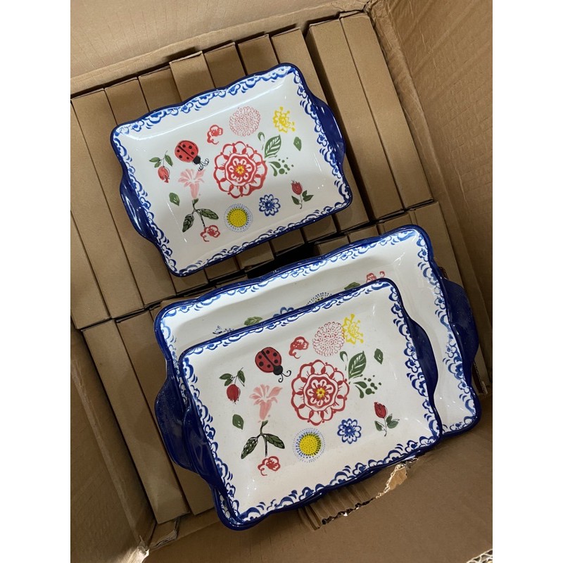 Nhà cửa & Đời sống > Bộ đồ bàn ăn > Dĩa || Đĩa chữ nhật viền sóng Hoa bướm kiểu Bắc ÂuCòn hàng