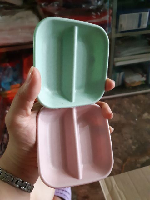 Kích thước 9×9×2cmĐĩa đựng nước chấm 2 ngăn bằng lúa mạch. Tiện lợi thân thiện với môi trường. Vừa làm cho không gian bàn ăn thêm sang trọng