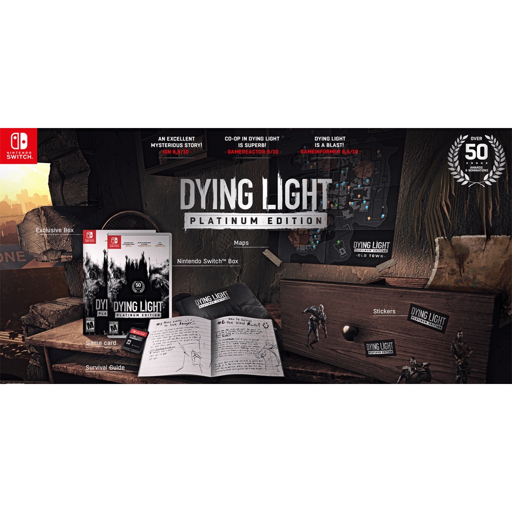 Dying Light Platinum Edition sẽ mang lại cho người chơi Nintendo Switch một lượng nội dung đồ sộ. Ngoài phần game chính, phiên bản này còn bao gồm luôn 4 DLC lớn và 17 skin bundle. Game cũng hỗ trợ HD Rumble (rung), nhắm bắn bằng cảm ứng, điều khiển bằng cảm ứng chuyển dộng, chơi trên màn hình cảm ứng, và kết nối chơi nhiều người nội bộ, online.