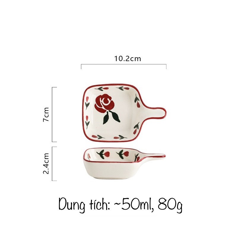 Giới thiệu Đĩa gia vị dáng vuông Cherry hoa hồng