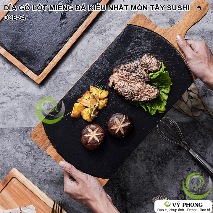 DĨA GỖ KHAY GỖ TƯƠNG TƯ LÓT ĐÁ PHONG CÁCH NHẬT MÂM GỖ PHỤC VỤ MÓN TÂY TRANG TRÍ BẾP ĐẠO CỤ CHỤP ẢNH SẢN PHẨM DCB-54