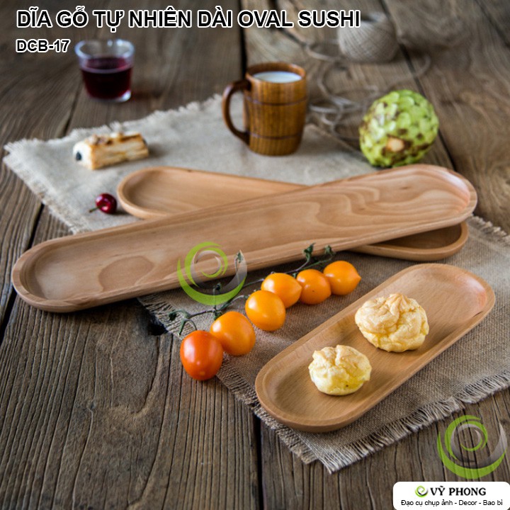 DĨA GỖ SỒI TỰ NHIÊN DÀI OVAL PHONG CÁCH NHẬT BẢN ĐỂ BÁNH SUSHI TRANG TRÍ BẾP ĐẠO CỤ CHỤP ẢNH SẢN PHẨM INS DCB-17