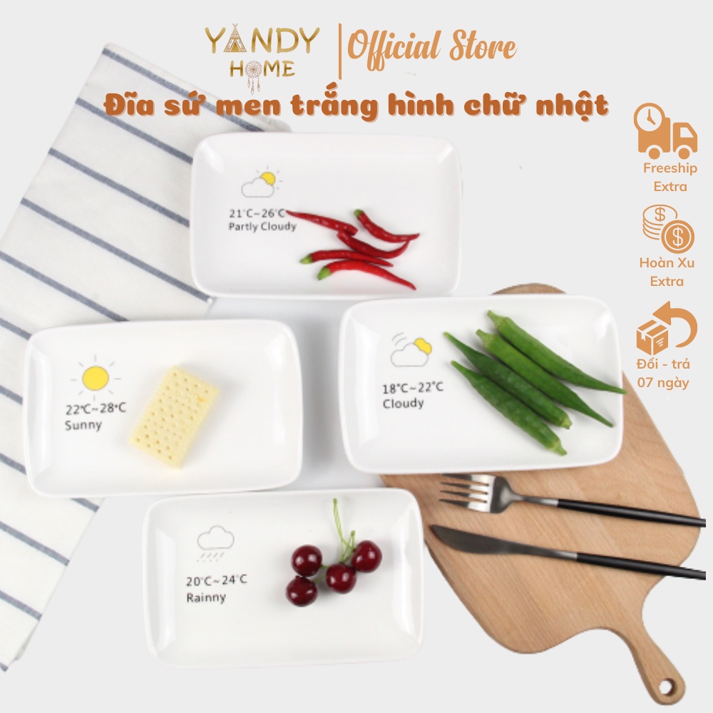 Nhà cửa & Đời sống > Bộ đồ bàn ăn > Dĩa || Đĩa gốm sứ YANDY HOME D02 hình chữ nhật men trắng bóng nhiều họa tiết dùng được trong lò vi sóngCòn hàng
