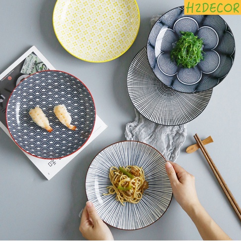 Giới thiệu Đĩa gốm tròn phong cách nhật bản size 17cm, đĩa sứ trang trí món ăn sang trọng -H2decor