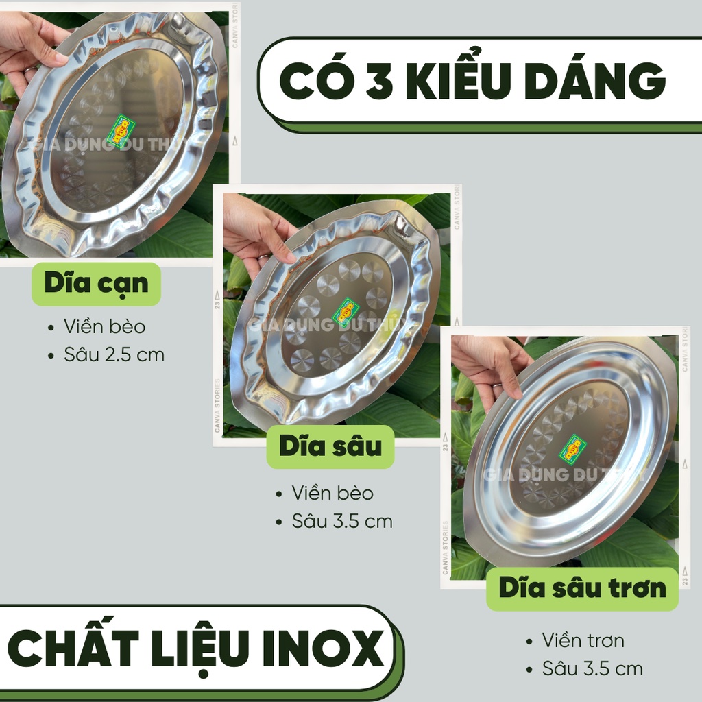 Dĩa hột xoài inox cao cấp nhỏ, lớn, cạn, sâu đủ loại, thiết kế dĩa hoa văn đẹp mắt sáng bóng của gia dụng Du Thủy