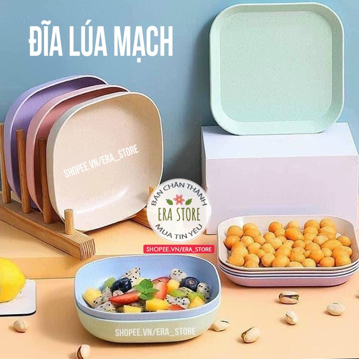 Đĩa LÚA MẠCH nhựa vuông tròn nhiều màu gọn nhẹ an toàn cho sức khỏe đựng kẹo thức ăn tiện lợi đẹp mắt