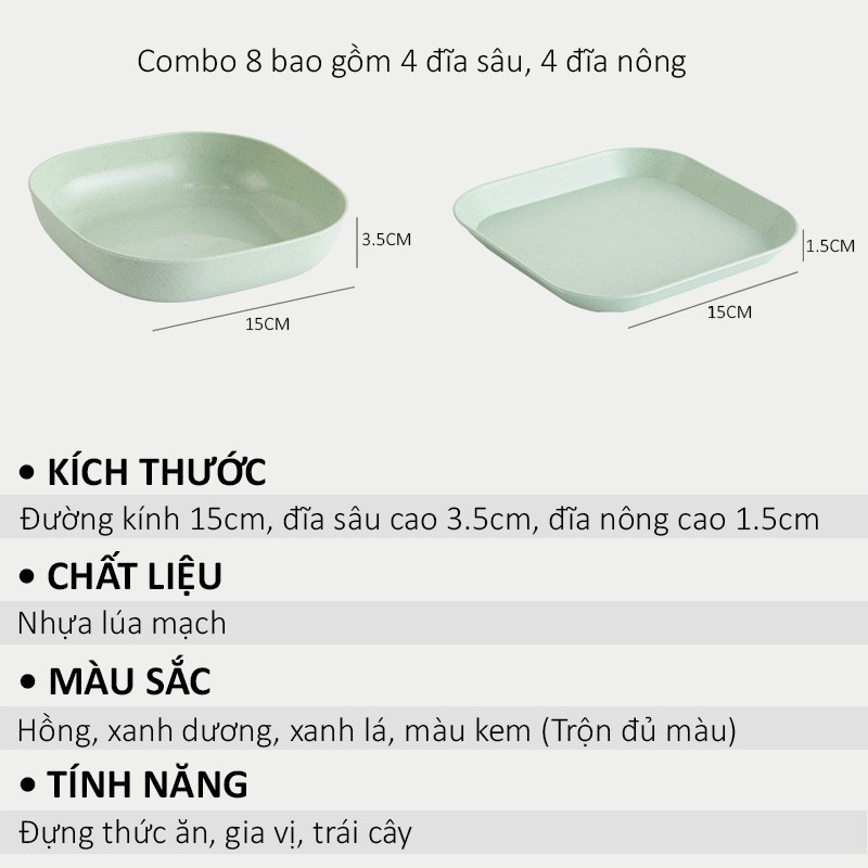 Giới thiệu Đĩa Lúa Mạch Vuông Set 8 Chất Liệu Nhựa Lúa Mạch Sinh Học An Toàn Cho Sức Khoẻ