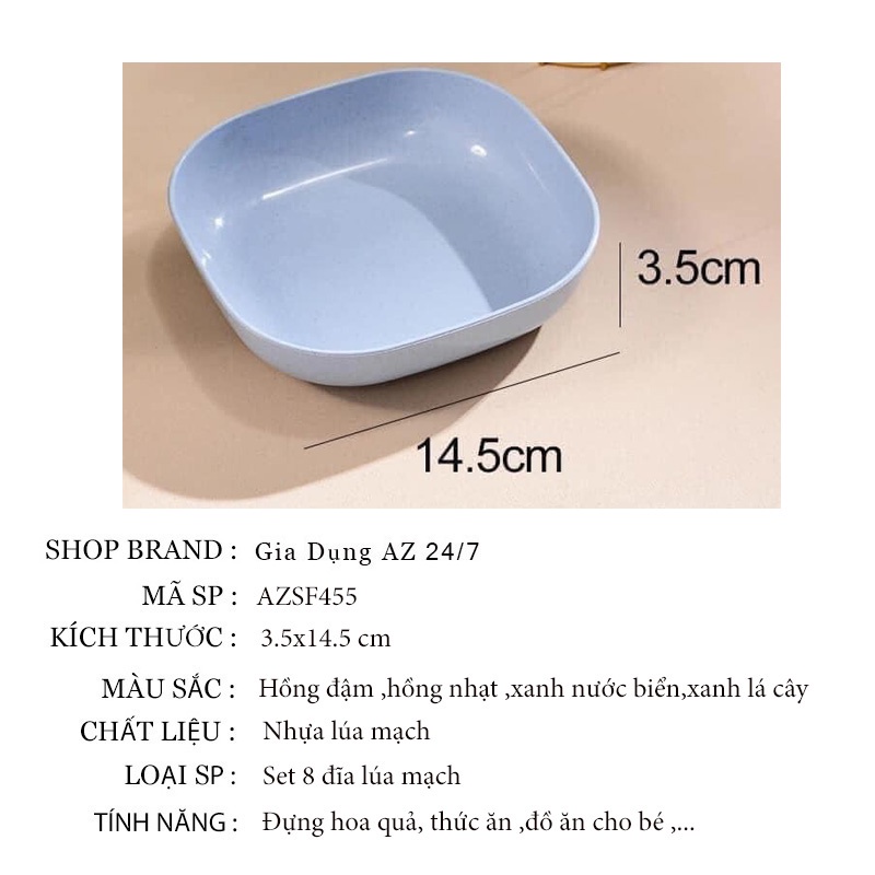 Đĩa lúa mạch vuông tròn size to sâu lòng set 8 đĩa lúa mạch đựng hoa quả trái cây cao cấp AZ SF4551 Mô tả sản phẩm