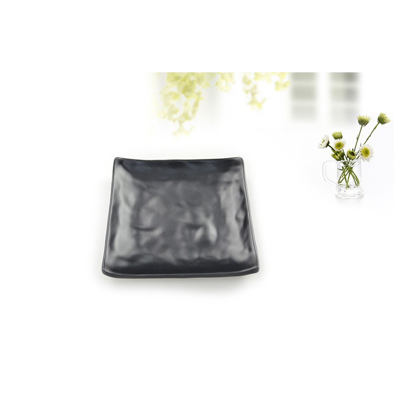 Đĩa Nhựa Vuông Đen, Dĩa Melamine Phíp Nhám Cao Cấp Đựng Bánh Ngọt Có Vân Đá WT4414- Duonghieu6789