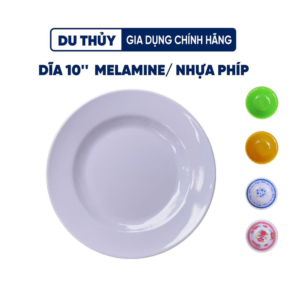 Dĩa nhựa tròn cạn 10" 25 cm nhựa melamine an toàn, dễ vệ sinh, hạn chế nứt vỡ màu trắng, vàng, xanh, đủ bông đẹp mắt