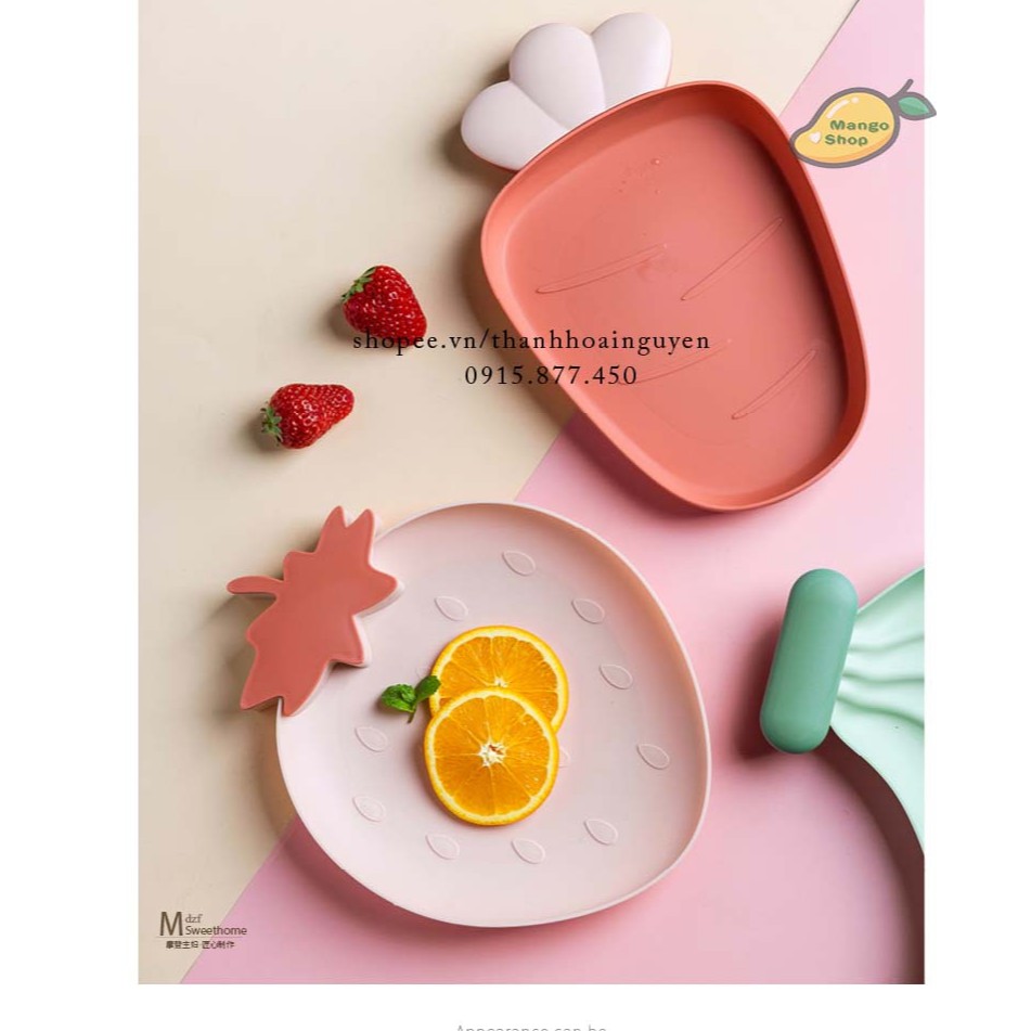 Đĩa quả dâu tây pastel xinh xắn có nắp đựng tăm ( đĩa đựng trái cây , đô ăn vặt xinh xắn )