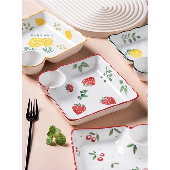 Nhà cửa & Đời sống > Bộ đồ bàn ăn > Dĩa || Đĩa sứ đa năng trái cây kèm ngăn gia vị nhỏ tiện lợi, khay trái cây liền ô chấmCòn hàng