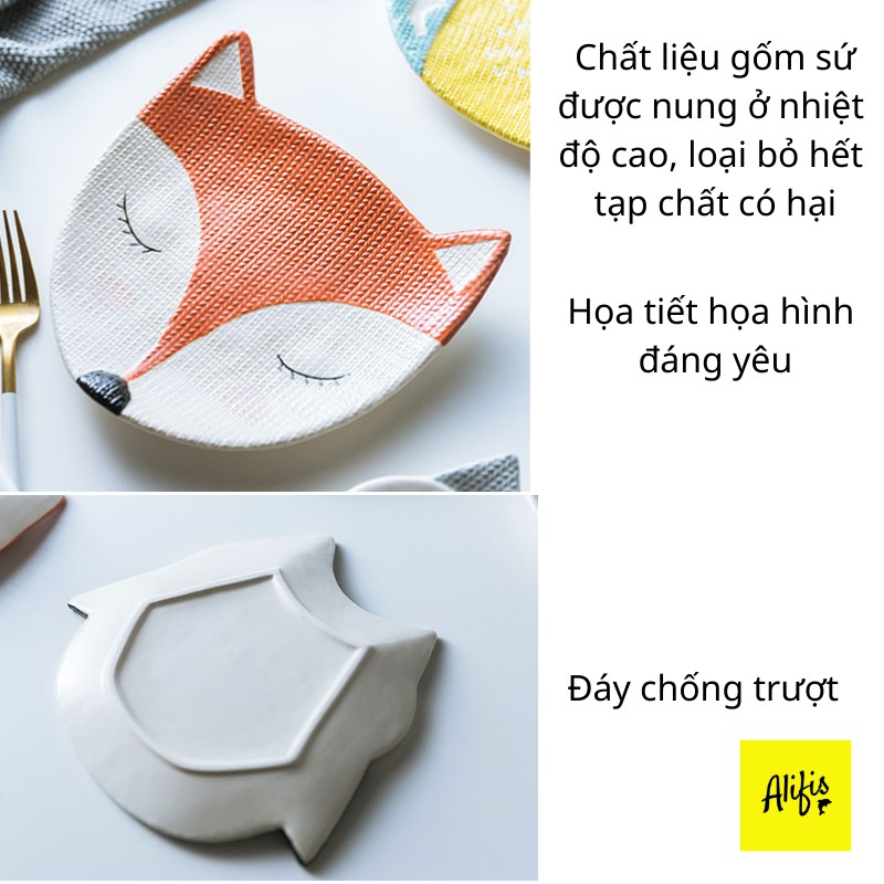 - Đĩa sứ dày dặn được thiết kế độc đáo với hình động vật đáng yêu rất phù hợp với các gia đình có trẻ nhỏ, giúp bé ăn ngon miệng hơn cũng như thỏa mãn đam mê bày biện đồ ăn của mẹ.