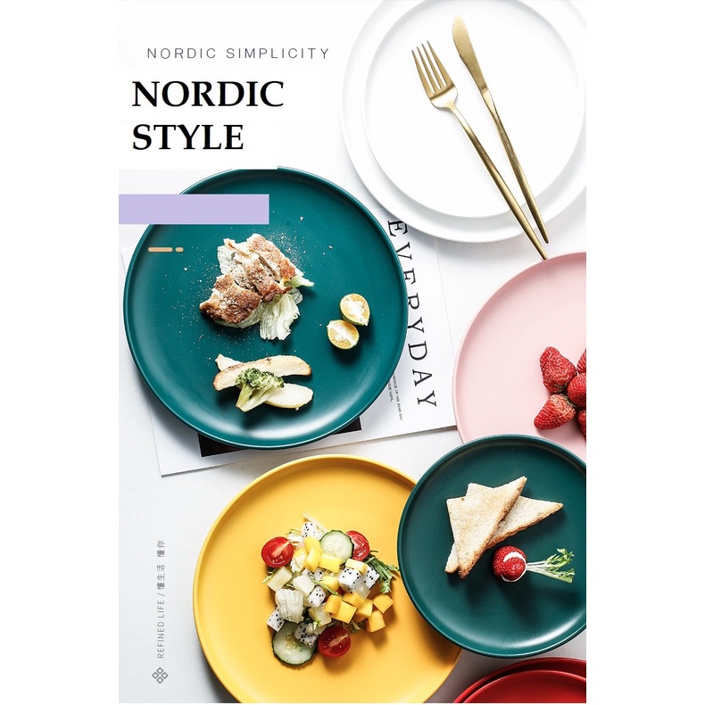 Đĩa sứ, dĩa sứ tròn ceramic nhiều màu phong cách Bắc Âu sang trọng cho các món ăn chính, bánh hoặc trang trí bàn ăn 20cm