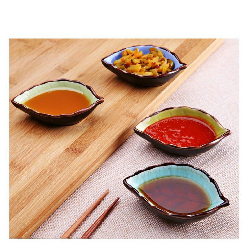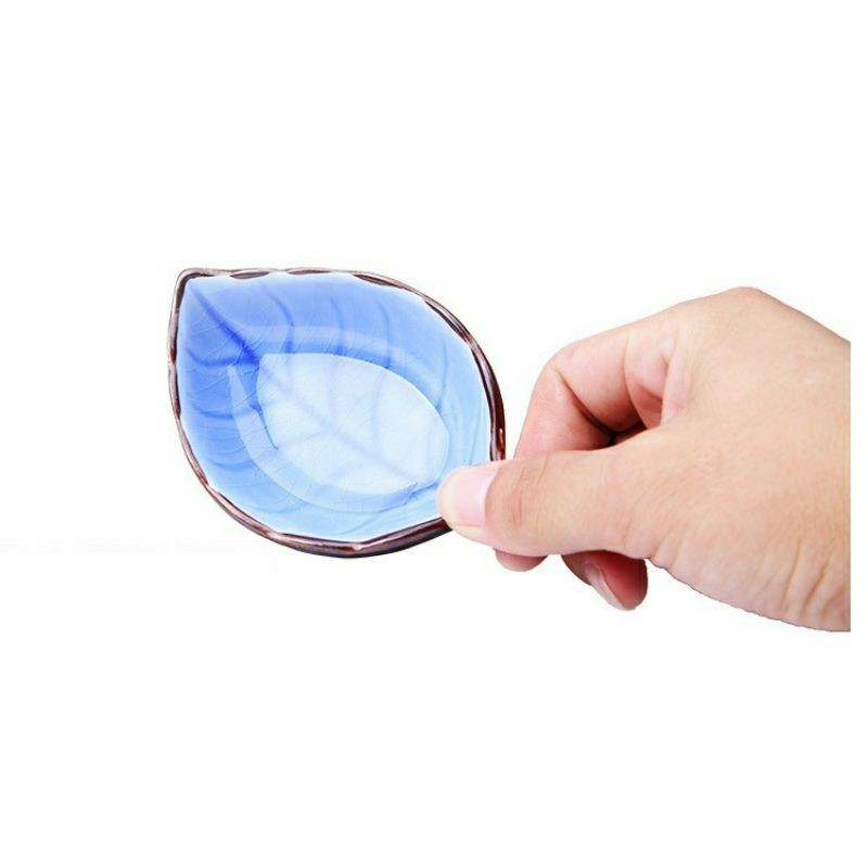 ĐĨA SỨ ĐỰNG GIA VỊ, NƯỚC CHẤM HÌNH LÁ KIỂU NHẬT- Chất liệu : Sứ