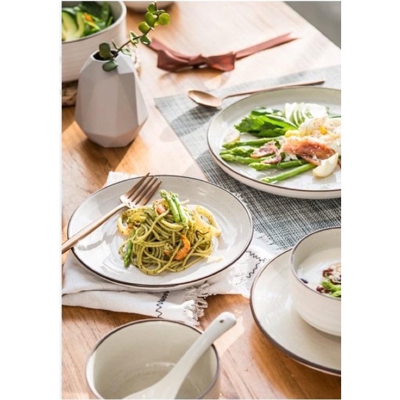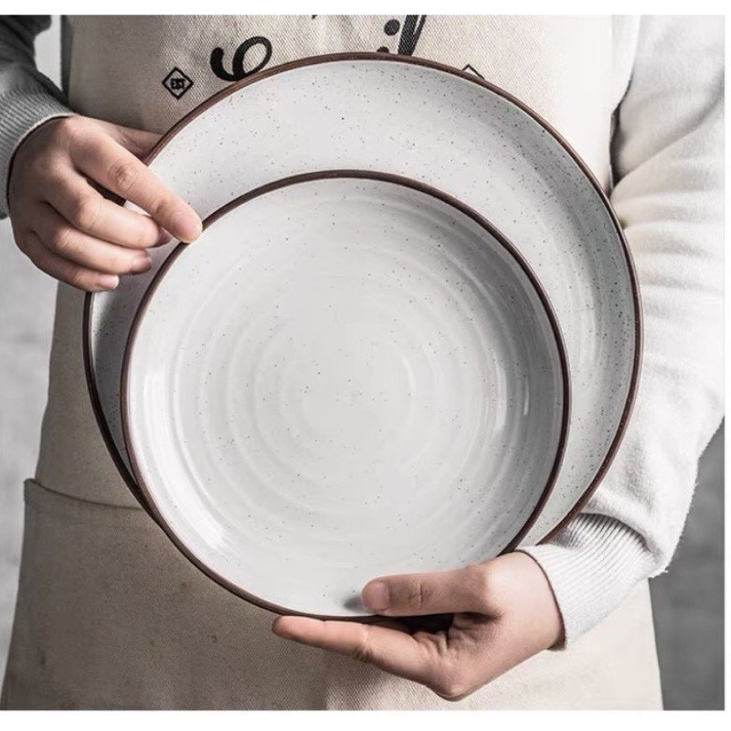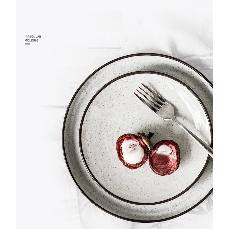 Nhà cửa & Đời sống > Bộ đồ bàn ăn > Dĩa || Đĩa sứ tròn decor phong cách Bắc Âu, Đĩa sứ cao cấp Men Tiêu Tuyết viền đenCòn hàng