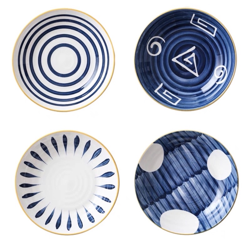 Đĩa sứ tròn phong cách Nhật Bản,viền vàng cao cấp gồm có 4 họa tiết: