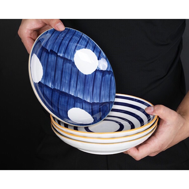 Đĩa sứ tròn phong cách Nhật Bản được làm bằng sứ cao cấp