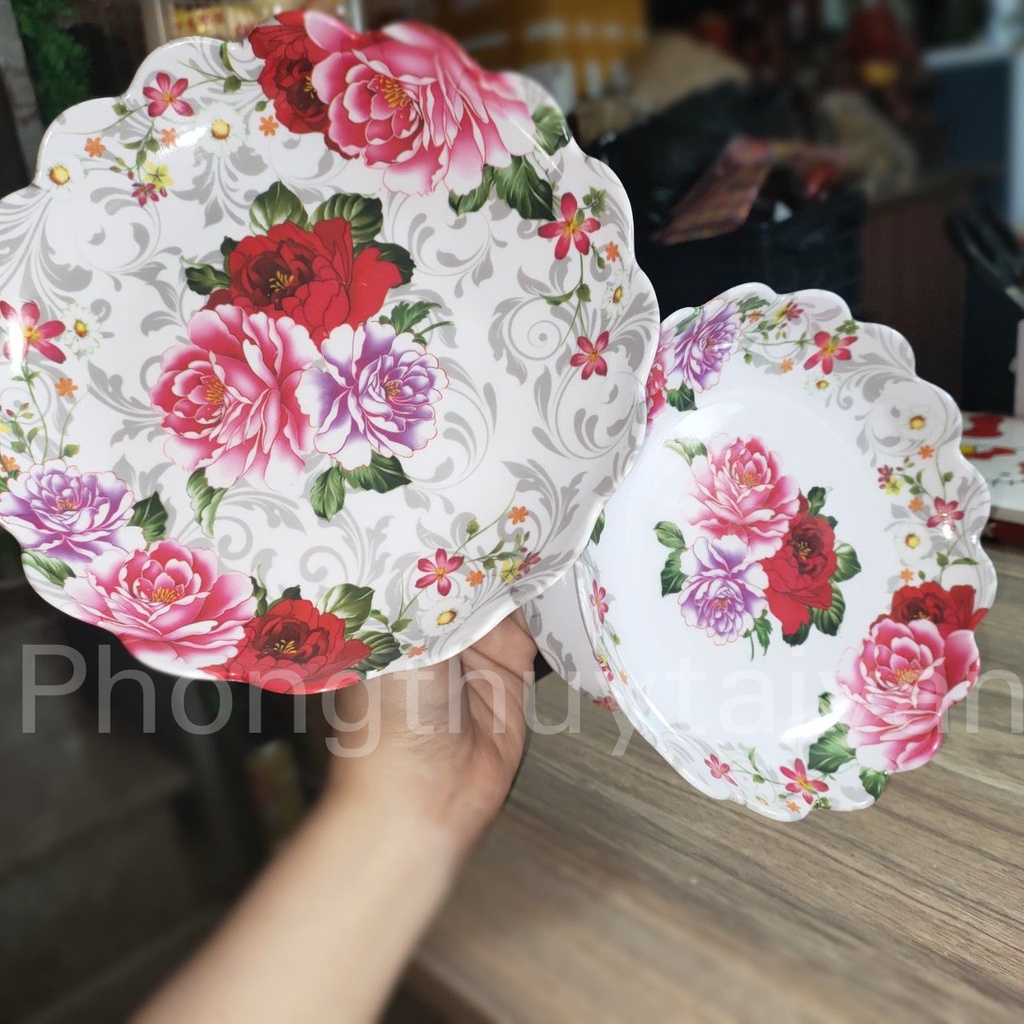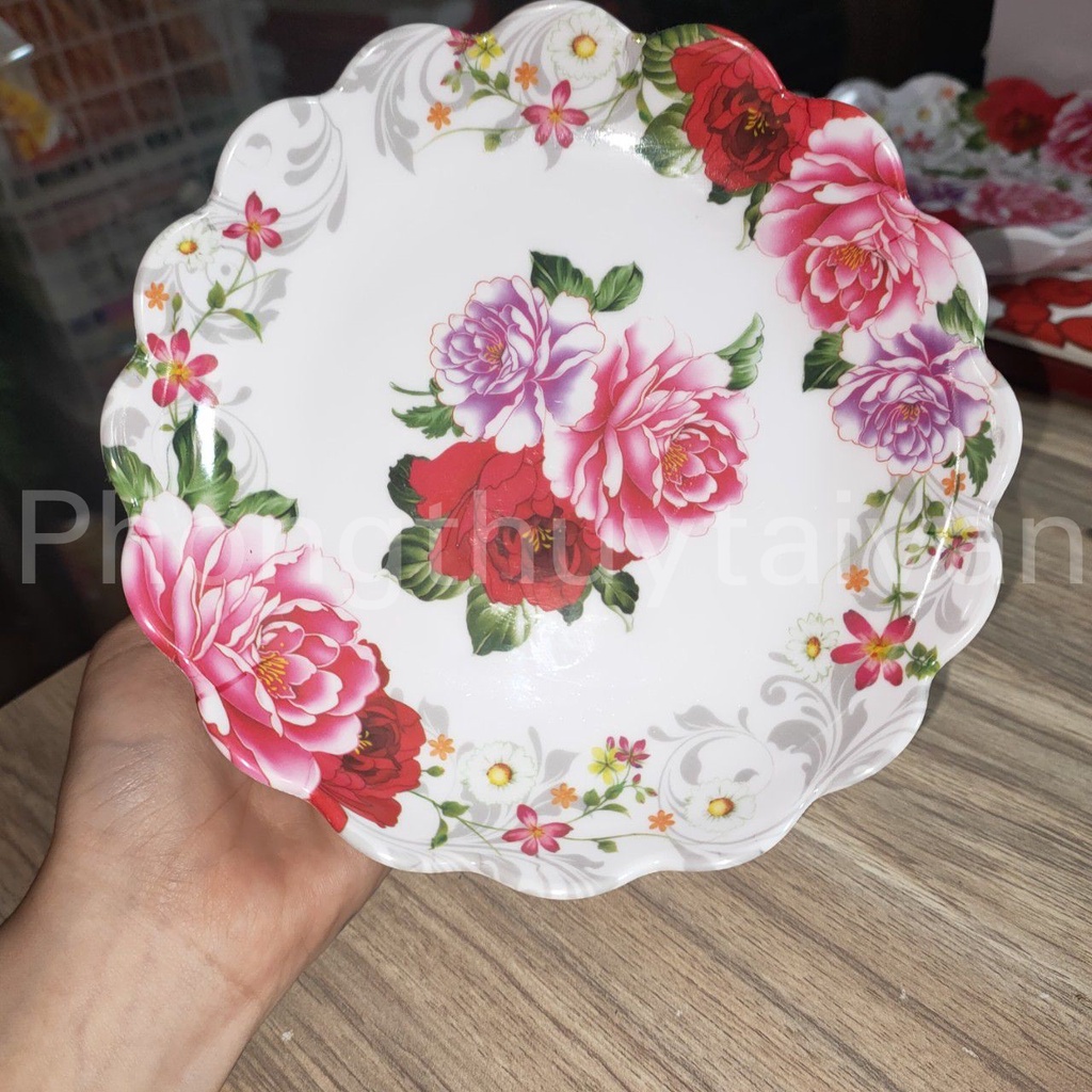 Nhà cửa & Đời sống > Bộ đồ bàn ăn > Dĩa || Dĩa trái cây mica Hoa Mẫu đơn15cm, 17cmCòn hàng
